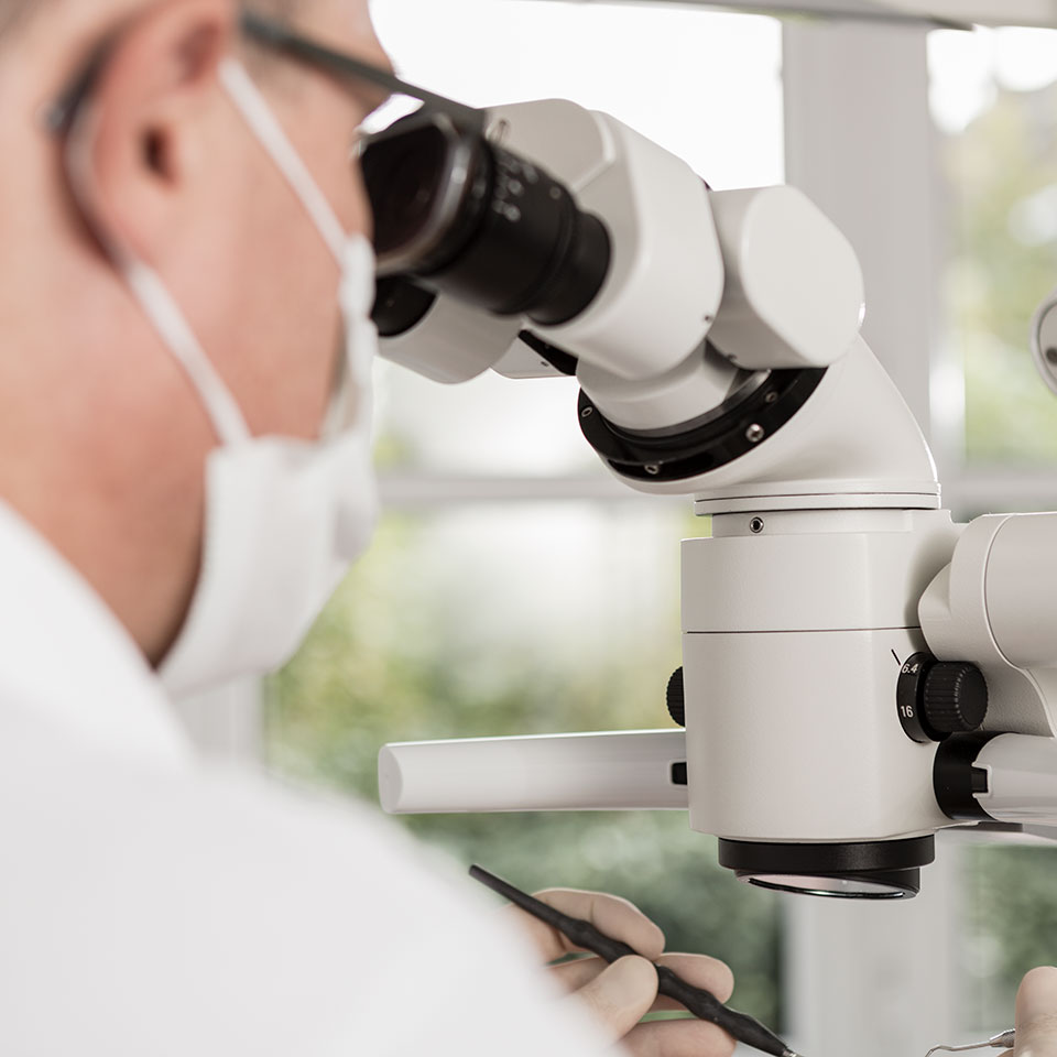 * Zur Sicherung der Qualität führen wir alle Behandlungen unter dem Mikroskop durch – sogar die PZR!